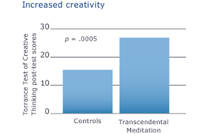 Las personas que han aprendido la Meditación Trascendental muestran un incremento en la creatividad en comparación con el grupo control, medida por un nivel más alto de originalidad visual después de cinco meses de práctica. También mostraron un crecimiento de la creatividad medida a través de niveles más altos de flexibilidad visual y fluidez verbal.